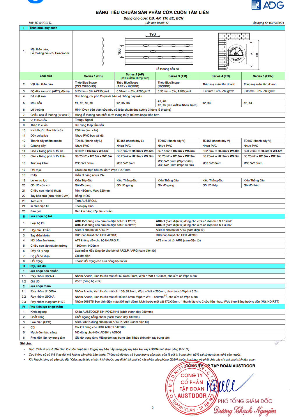 Vật liệu thân cửa được làm bằng thép hợp kim mạ nhôm kẽm AZ150 Colorbond của hãng BuleScope Steel – Australia có tỷ trọng thân cửa thấp (5kg/m2) và hệ thống lò xo trợ lực luôn cân bằng trọng lực thân cửa giúp cửa cuốn thép Tấm liền Austroll vận hành nhẹ nhàng và có thể dừng ở bất kỳ vị trí nào.